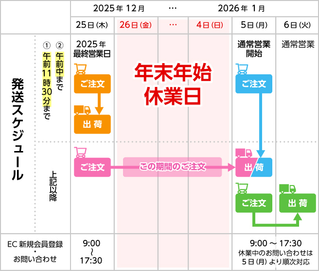 年末年始休業期間:2025年12月26日(金)~2026年1月4日(日)