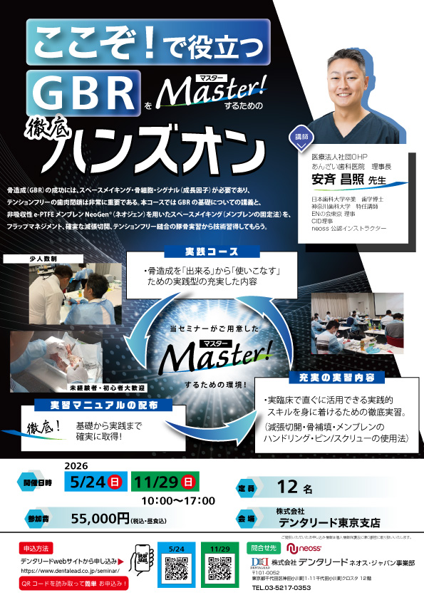 非吸収性メンブレンNeoGenを用いたGBRの基礎セミナー【東京2025】